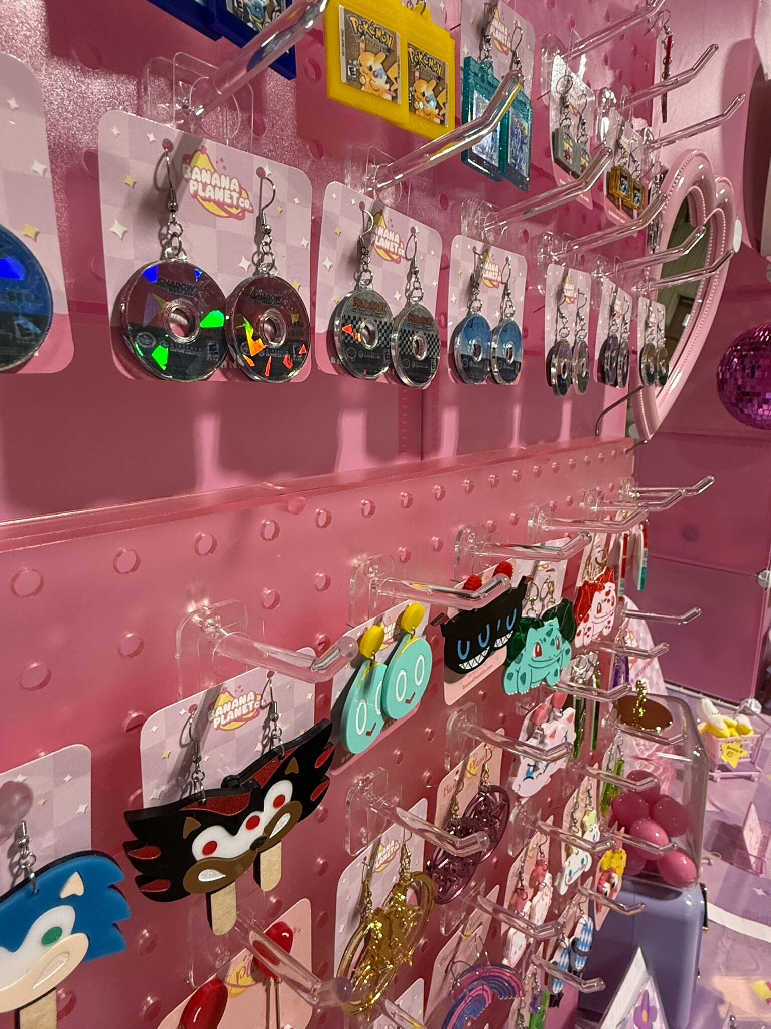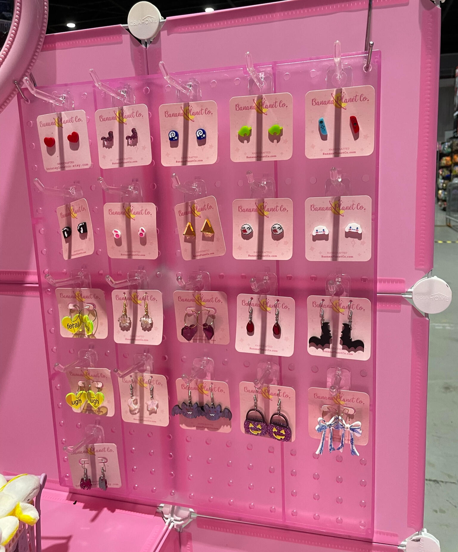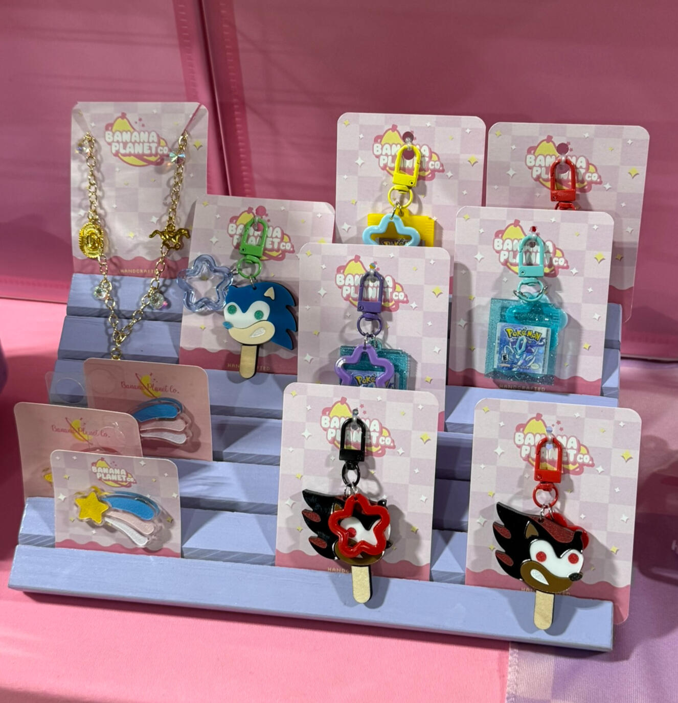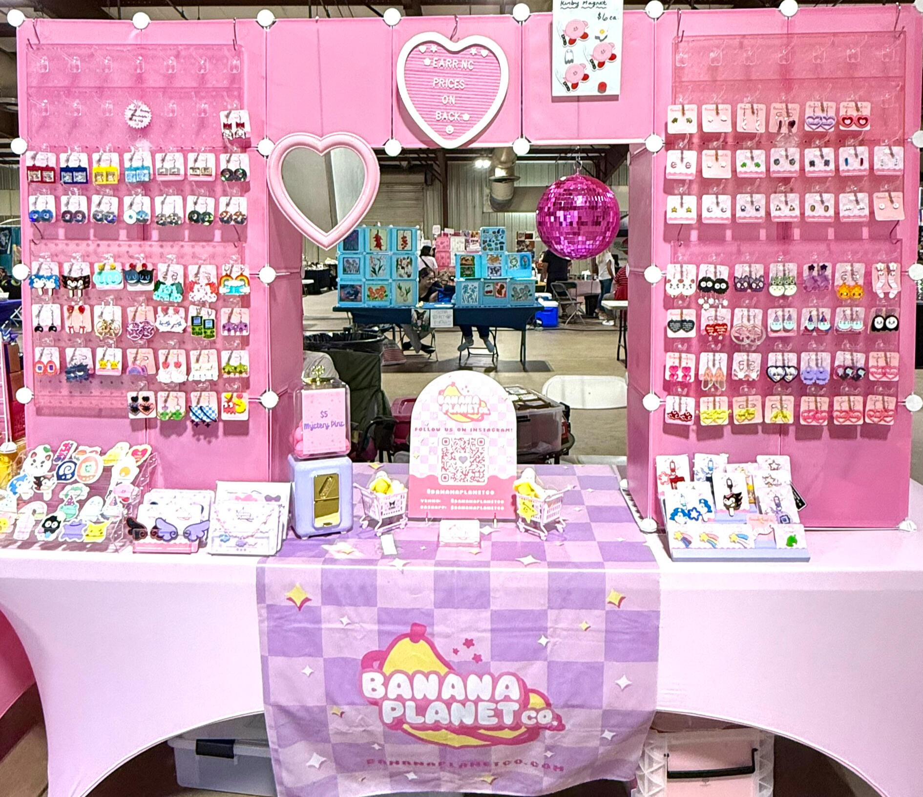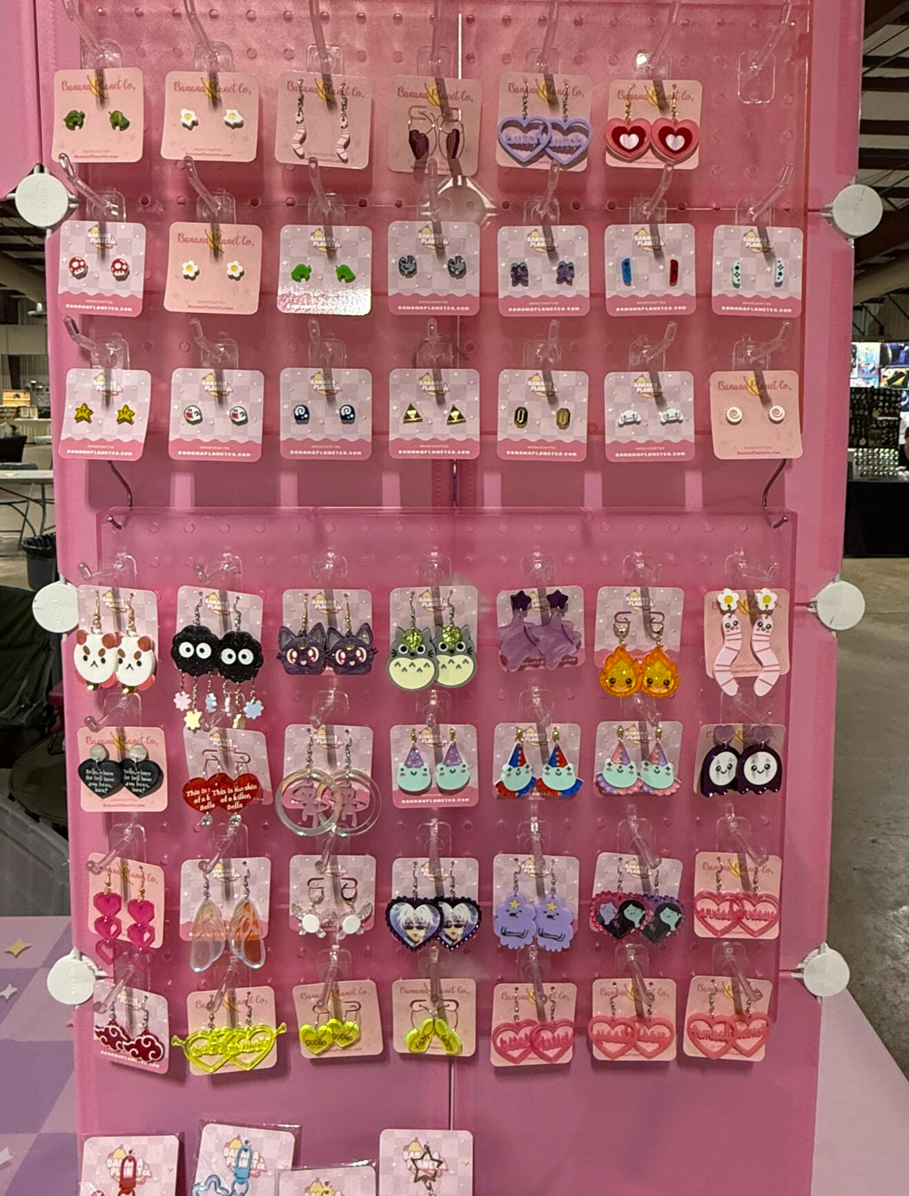 Banana Planet Co. is POC, LGBTQ+, and woman owned and operated. The owner, Sarah, and her partner, Jose, specialize in designing and creating handmade acrylic jewelry and accessories inspired by gaming, anime, pop culture, and all things cute. Their items include earrings, necklaces, pins, hair clips, key chains and stickers. Banana Planet Co. can be found vending at local markets and conventions in the Southeast US.