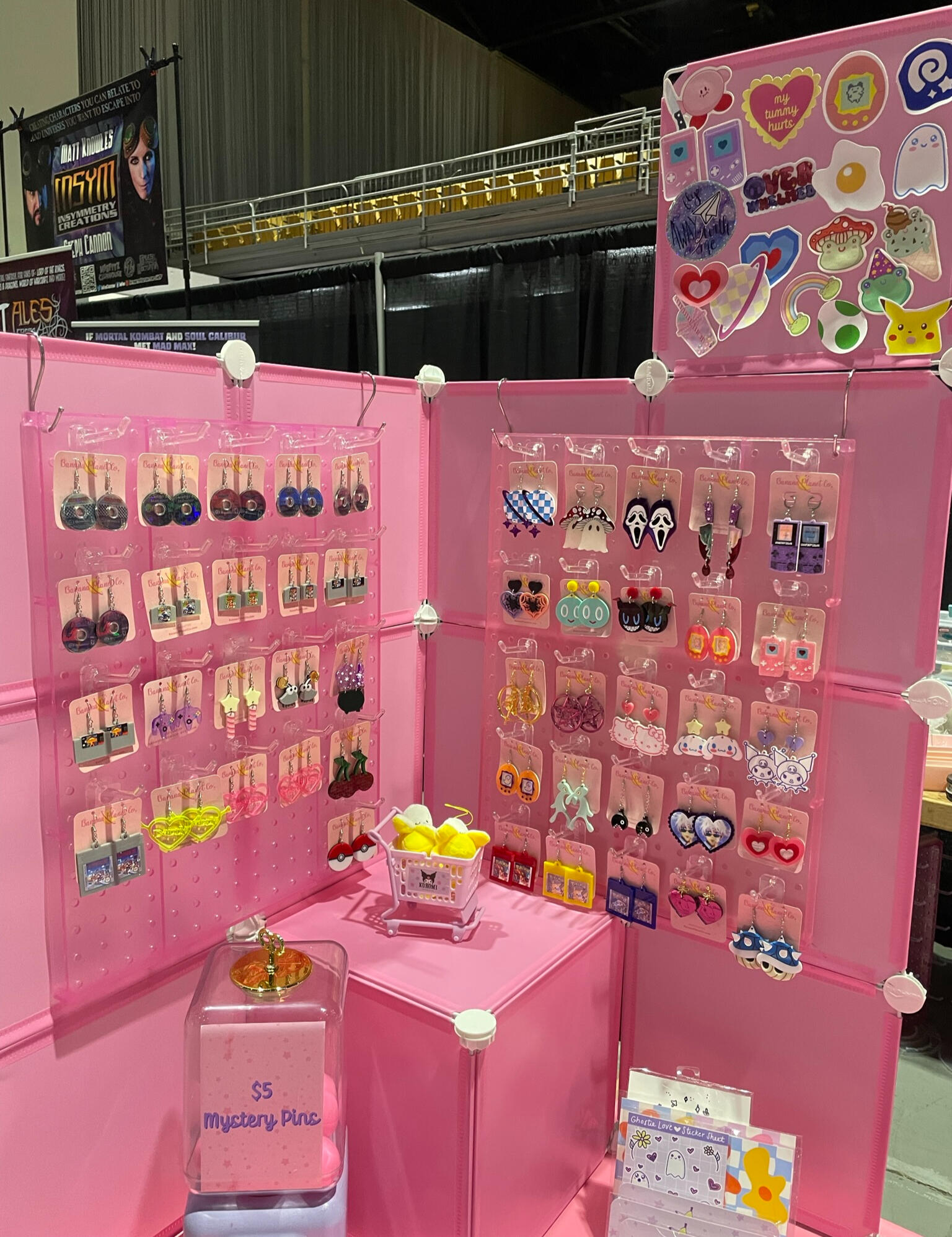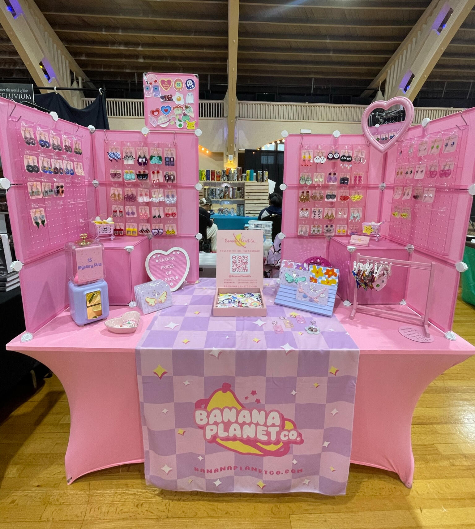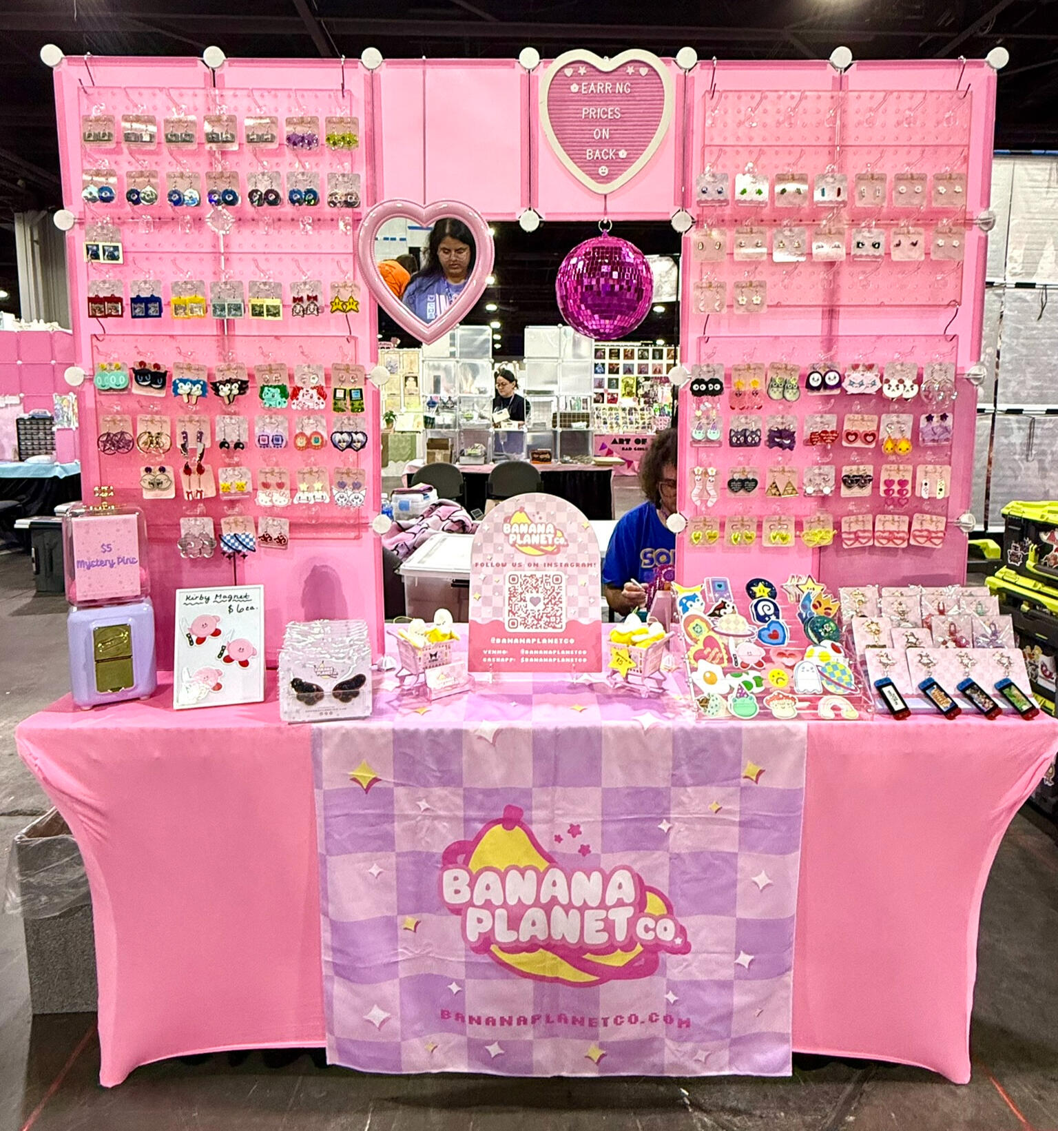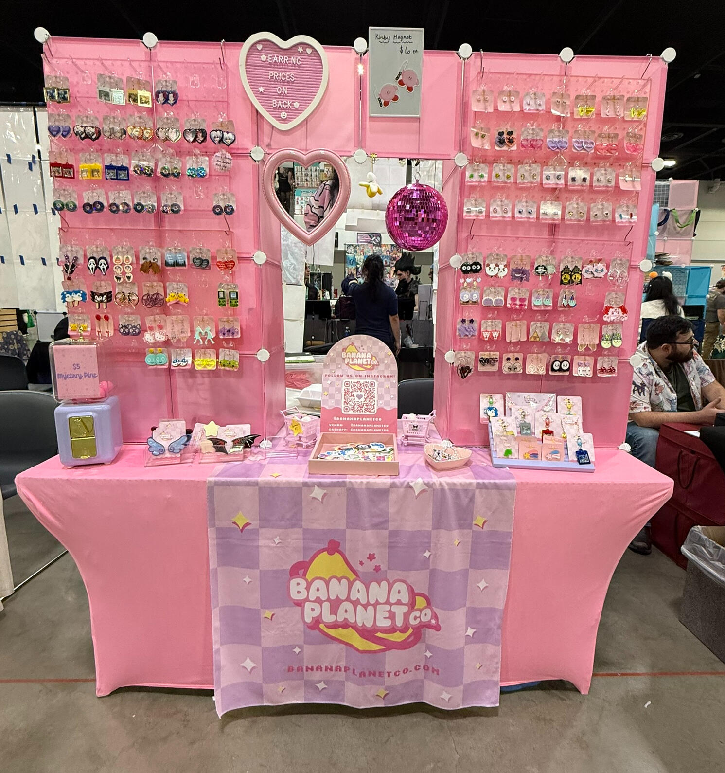 Banana Planet Co. is POC, LGBTQ+, and woman owned and operated. The owner, Sarah, and her partner, Jose, specialize in designing and creating handmade acrylic jewelry and accessories inspired by gaming, anime, pop culture, and all things cute. Their items include earrings, necklaces, pins, hair clips, key chains and stickers. Banana Planet Co. can be found vending at local markets and conventions in the Southeast US.